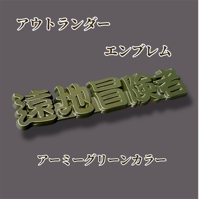 アウトランダー乗り必見! 遠地冒険者エンブレムになります サイズは通常エンブレムと同じ位の大きさにて製作 色々並べて貼り付けても違和感の無いサイズ サイズ 150mm×31mm 厚み5mm カラー アーミーグリーン(艶消し) 材質 キャスト樹脂 ※エンブレム専用の強力両面テープ付き 塗装は車用の業務用の2液ウレタン塗装で仕上げています。 屋外使用でも全然問題ありません! 届いたら、取り付ける場所を掃除して貼り付けるだけとなります。 テーパー加工して立体的に作り上げている為、見た目もカッコイイ作りとなっています。 ※全てハンドメイドで製作しております。手作業での製作のため細かい傷や気泡などがあります。 気になる方はご購入をご遠慮下さい。 送料は全国一律 300円で発送可能(クリックポスト)